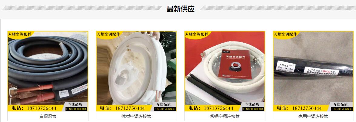 任丘市天耀空調配件有限公司是國內生產(chǎn)空調連接管、空調室內機掛板、空調銅管、冰箱冰柜干燥過濾器、空調打孔防塵袋、空調冷庫銅鋁接頭等的大型生產(chǎn)廠家。2019年連續(xù)參展印度、泰國、土耳其、印尼等國際暖通制冷行業(yè)展。