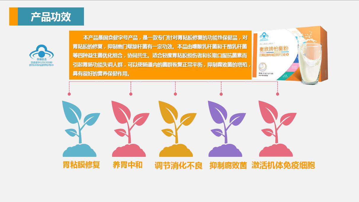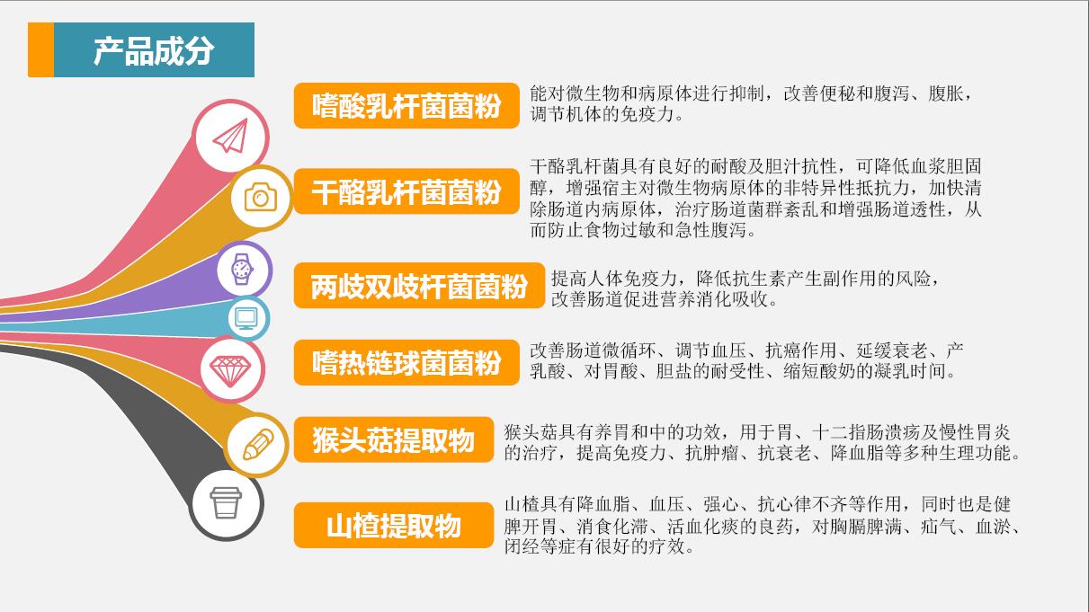 是雙乳桿菌和干酪乳桿菌等四種益生菌優(yōu)化組合的。協(xié)同共生,適合呢那種輕度胃粘膜損傷者和長期口服抗生素而引起的。胃腸功能失調(diào)的人群,它可以使腸道內(nèi)的菌群恢復(fù)正常平衡,抵制腐敗菌的增殖,具有很好的營養(yǎng)保健的作用。