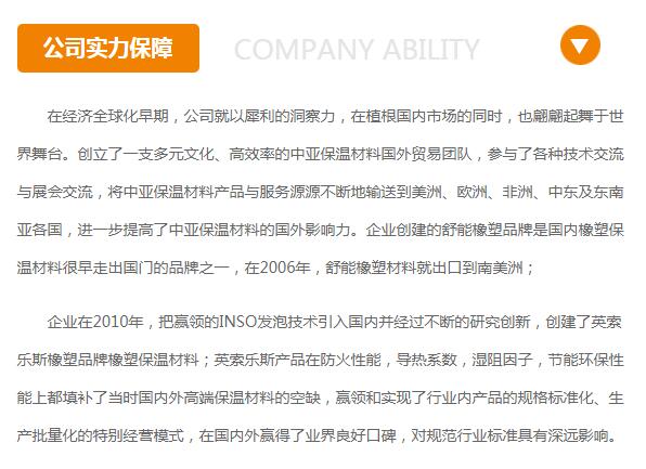 -中亞保溫材料有限公司是集研發(fā)、生產、銷售橡塑保溫材料、橡塑保溫管材、橡塑保溫板材、復合橡塑保溫材料、殼護保溫外護材料為一體的集團企業(yè)。